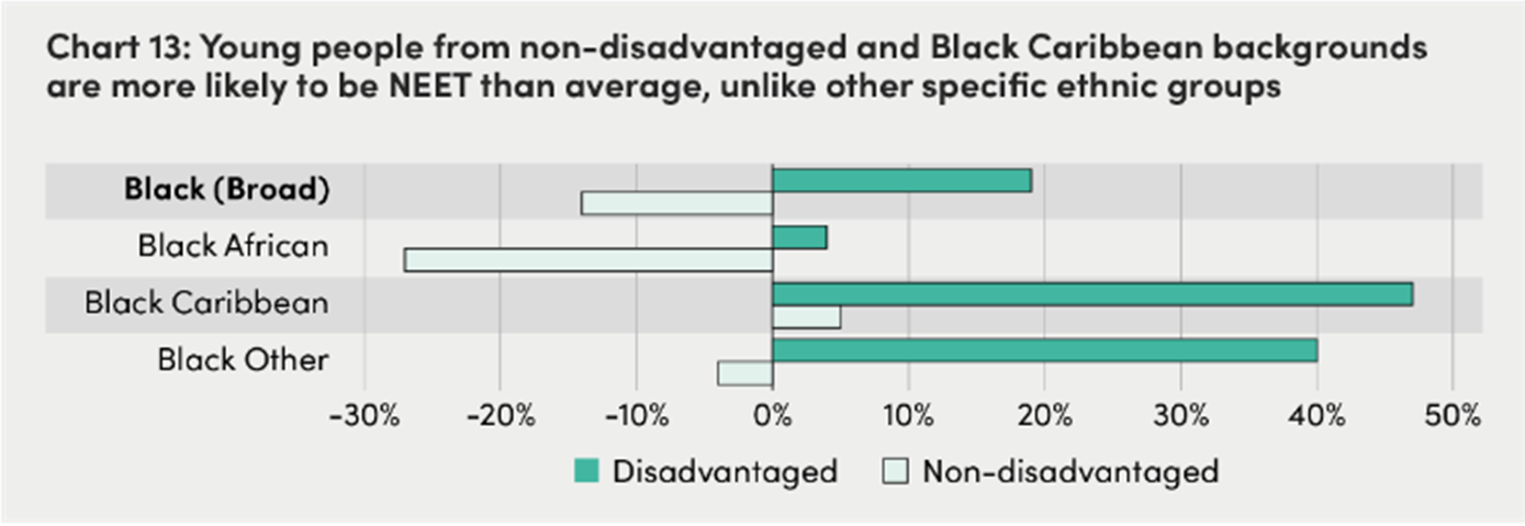 backgrounds have a higher likelihood of being NEET than those from other ethnic groups, even when they do not face disadvantage.