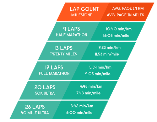 Take a look at the guide below to help you and your team shape your strategy and understand how your laps convert into milestone distances.